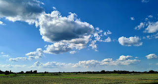 De week begint bij de rit langs de IJssel. Iedere week weer anders, maar altijd die wijde lucht. Winter en voorjaar zag ik de uiterwaarden vol water, nu zijn ze pasgemaaid en groen. De geur van hooi...